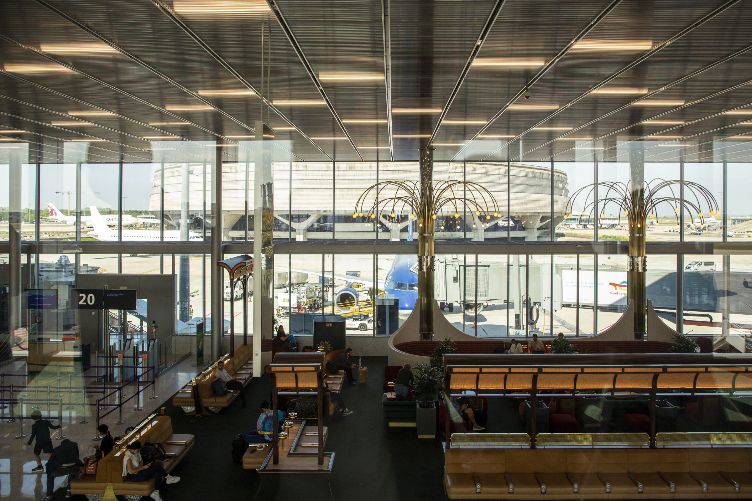 Place à la visite ! Les participants se sont rendus sur le site en passant par les postes de police et de sécurité, puis ont emprunté le « tunnel » extra-blanc redimensionné qui les a conduits vers le nouveau bâtiment construit à la place d’un satellite. Le point de vue est inédit, proche visuellement de la rotondité du bâtiment historique. L’opération, conçue, réalisée et pilotée par ADP, a cumulé les difficultés : un chantier situé au milieu des pistes, donc soumis à un contrôle permanent ; un chantier réalisé en interface avec l’exploitation de l’aéroport, donc soumis à un processus particulier ; un chantier, comme partout, interrompu par la Covid-19 ; un chantier aux multiples sujets techniques qu’il s’est agi de ne pas rendre visibles ; un chantier de taille avec ses 36 000 m2 créés et ses 5 200 m2 rénovés ; un chantier pionnier avec la mise en œuvre d’un nouveau concept, Extime, destiné à améliorer l’accueil des voyageurs… Une fin d’opération intense pour une livraison dans les temps, et une mise en exploitation comme prévu en décembre 2022.