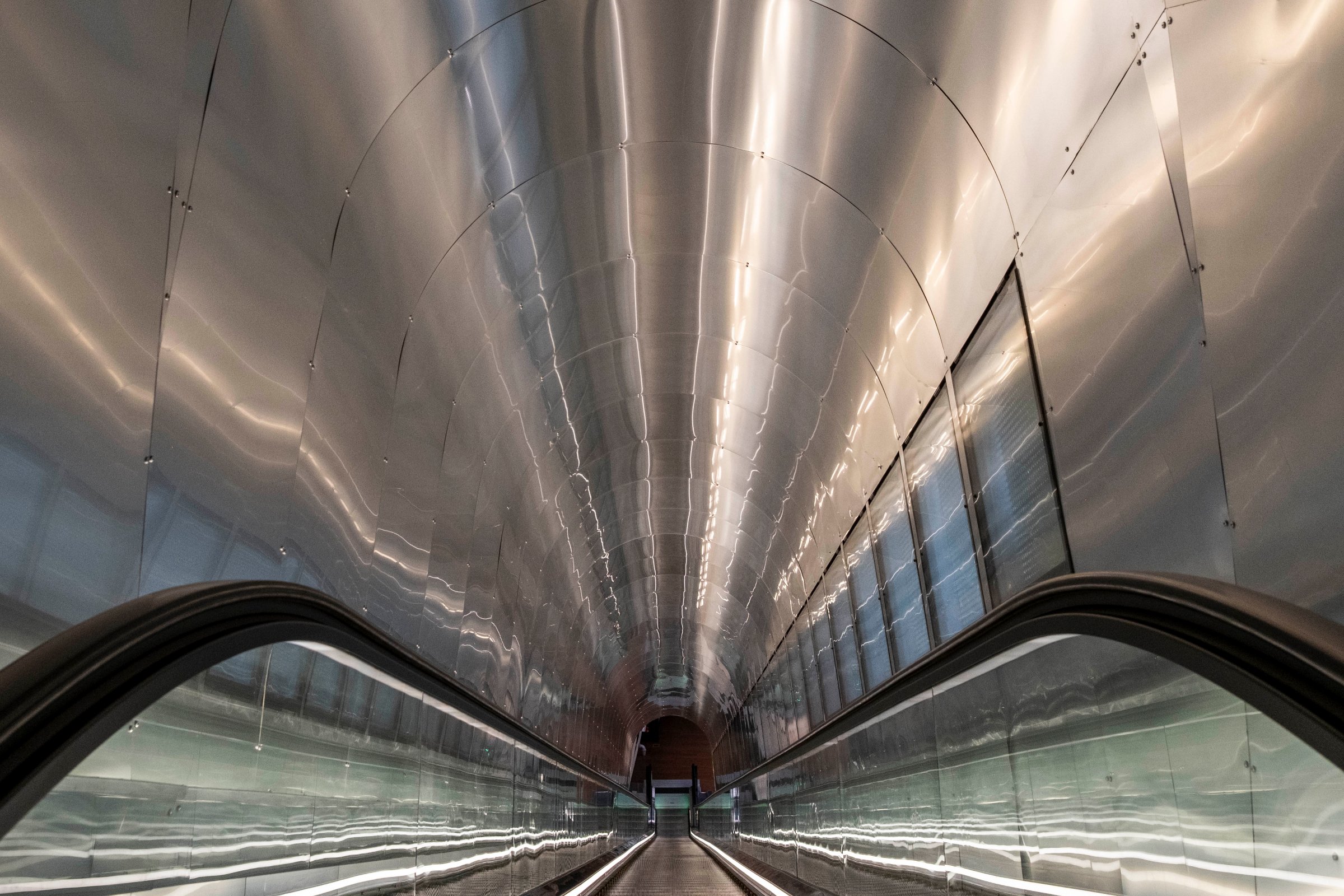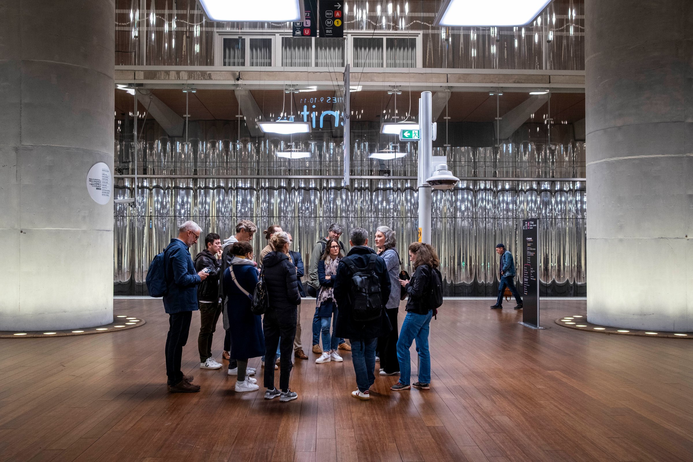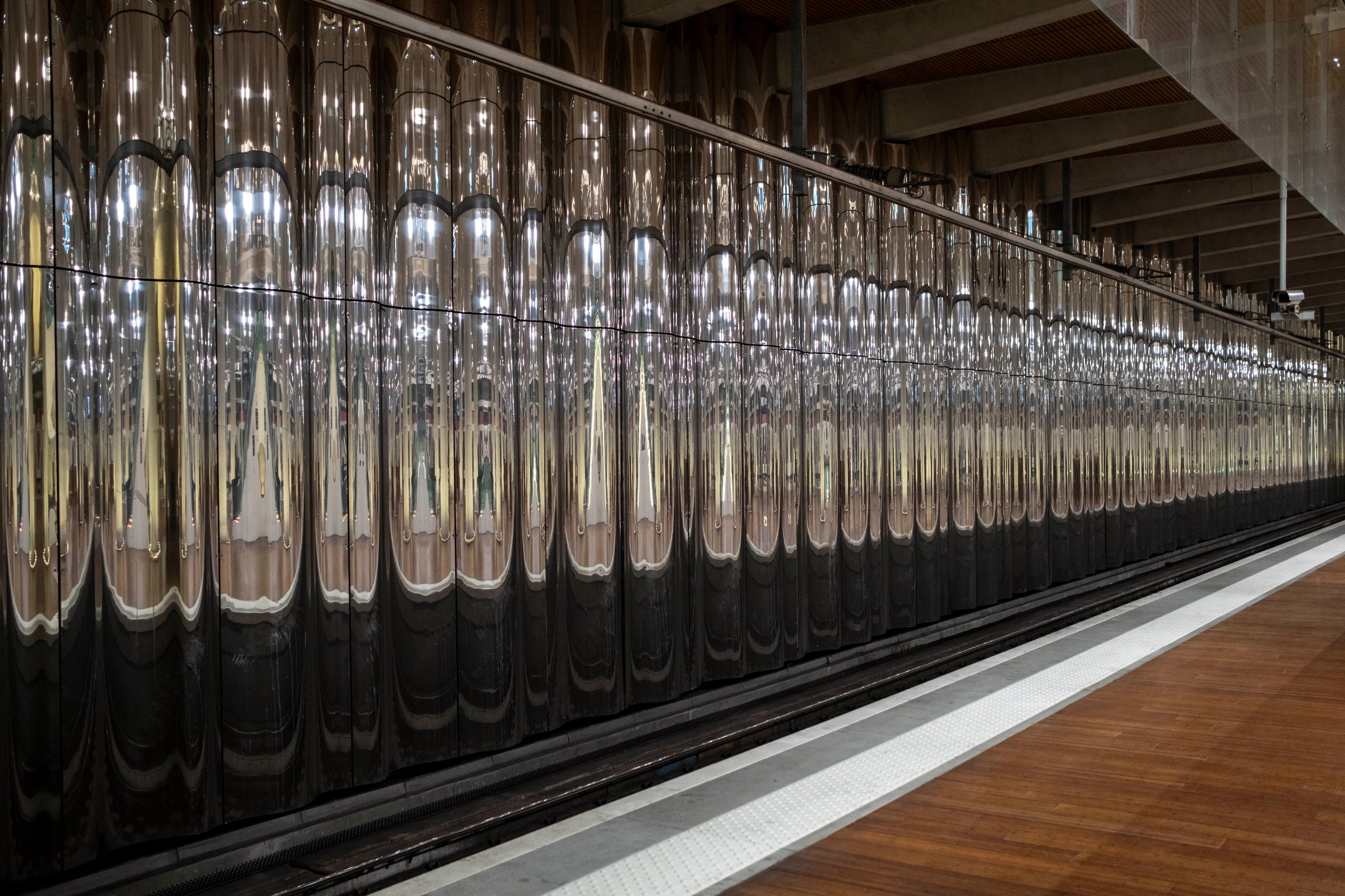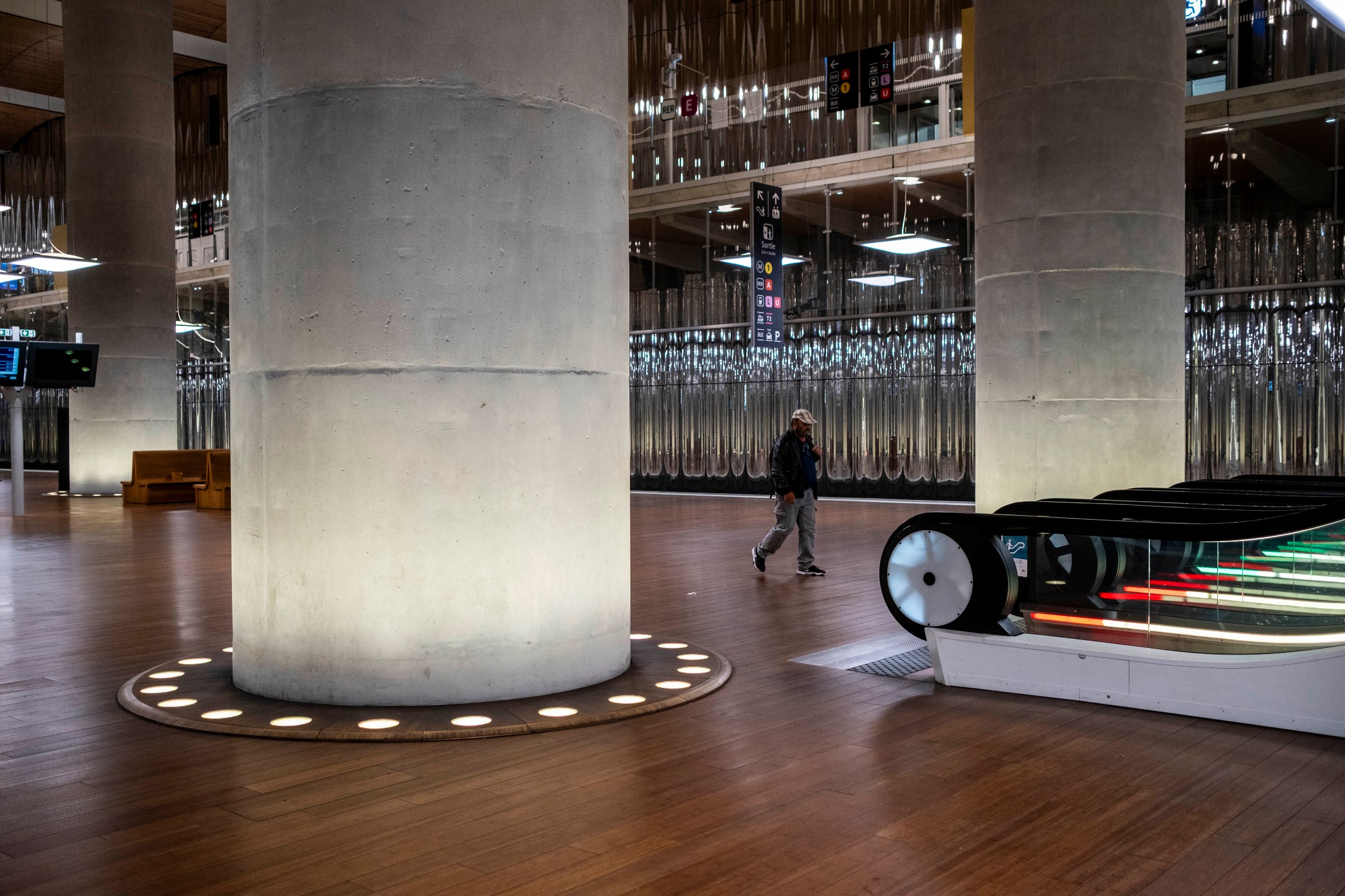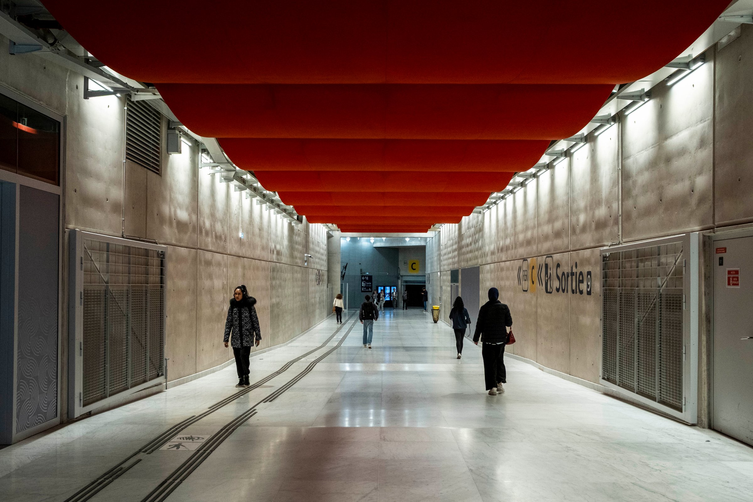L’autre élément remarquable est la grande hauteur sous plafond de la gare, donnant un sentiment d’espace au-dessus des quais. « Avec un plan de voies situé à plus de 35m de profondeur, la hauteur de sous plafond de 18 mètres s’est imposée d’elle-même », précise Aurélie Carnel. Avec une conception en méthode traditionnelle par opposition à un creusement par tunnelier, il faisait sens de libérer l’espace entre la voie et les infrastructures du Cnit localisées au-dessus. La respiration offerte par la conception cathédrale de la gare est donc un bénéfice induit ».