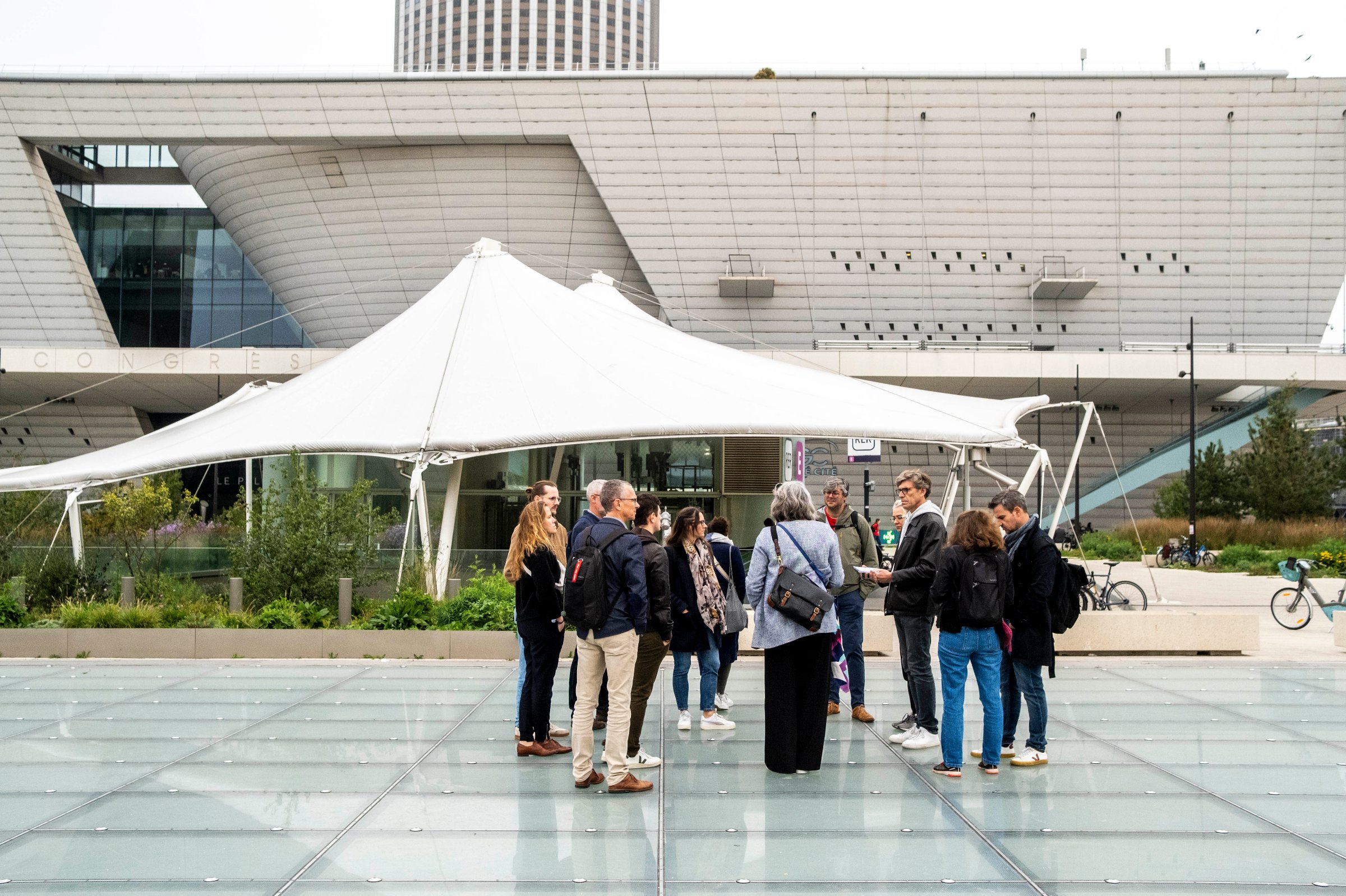 Seconde gare du prolongement, La Défense-Grande Arche se distingue avant tout par l’originalité de son emplacement. « La gare est localisée sous la voûte du Cnit et des bâtiments construits ensuite sous la voûte, constitué de 8 à 11 étages, dont 3 niveaux de parking, précise Aurélie Carnel. Nous avons réalisé une gare nécessitant l’excavation d’un volume de 110.000 m3 sous un bâtiment existant et sans en perturber le fonctionnement. Nous avons ainsi créé un espace sous le Cnit équivalent à la Tour Montparnasse à l’horizontale. Le premier enjeu a été de définir la méthode permettant de porter temporairement la structure des bâtiments sous la voute du Cnit le temps de créer les fondations de la nouvelle gare et les nouveaux appuis de ces bâtiments existants. Nous avons eu recours à une reprise en sous-œuvre, une technique connue mais encore jamais employée sur une telle surface pour un projet de cette ampleur ». Pour cela, des fondations provisoires ont été créées sur 120 poteaux structurels du bâtiment sous la voute du Cnit.