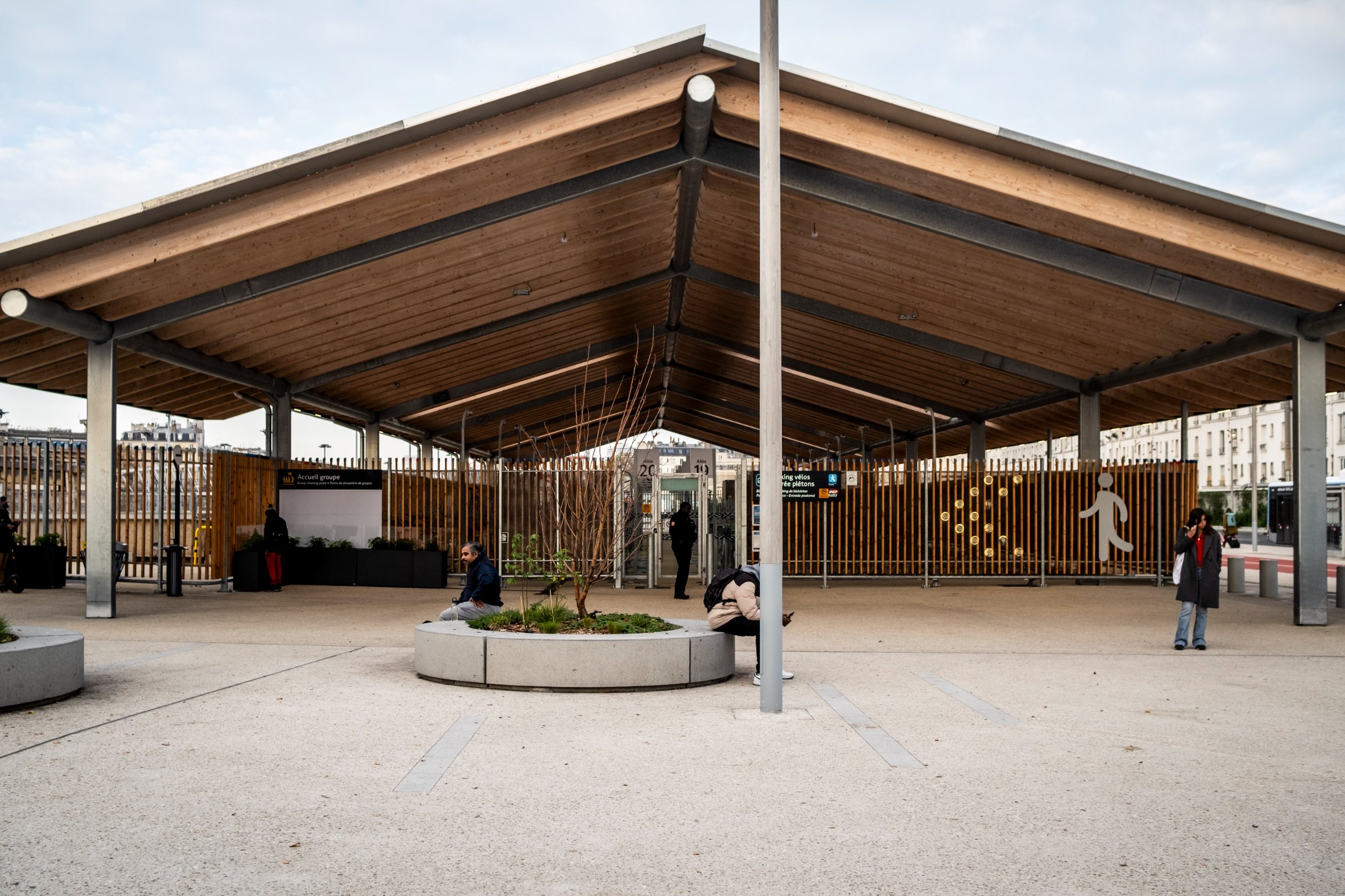 Côté bâtiments, les nouveaux espaces sont construits en grande majorité à l’aide de matériaux biosourcés ou réemployés. Côté énergie, les nouveaux éclairages LED, les escaliers mécaniques plus économes et les panneaux photovoltaïques installés en toiture permettent une économie d’énergie équivalente à la consommation annuelle de 80 foyers.
