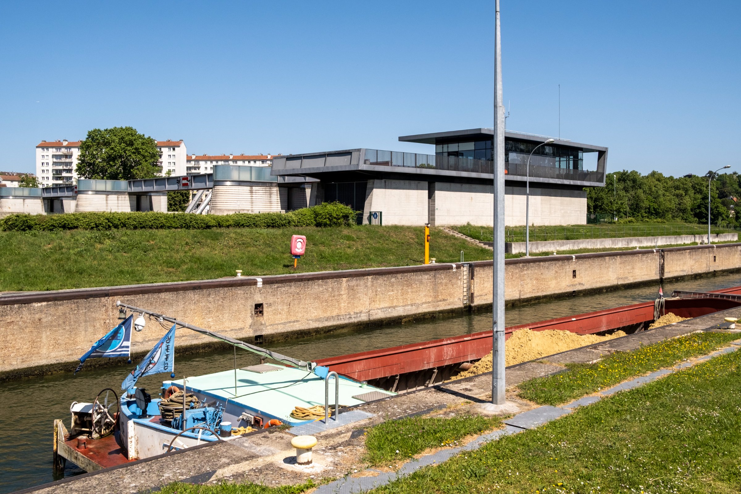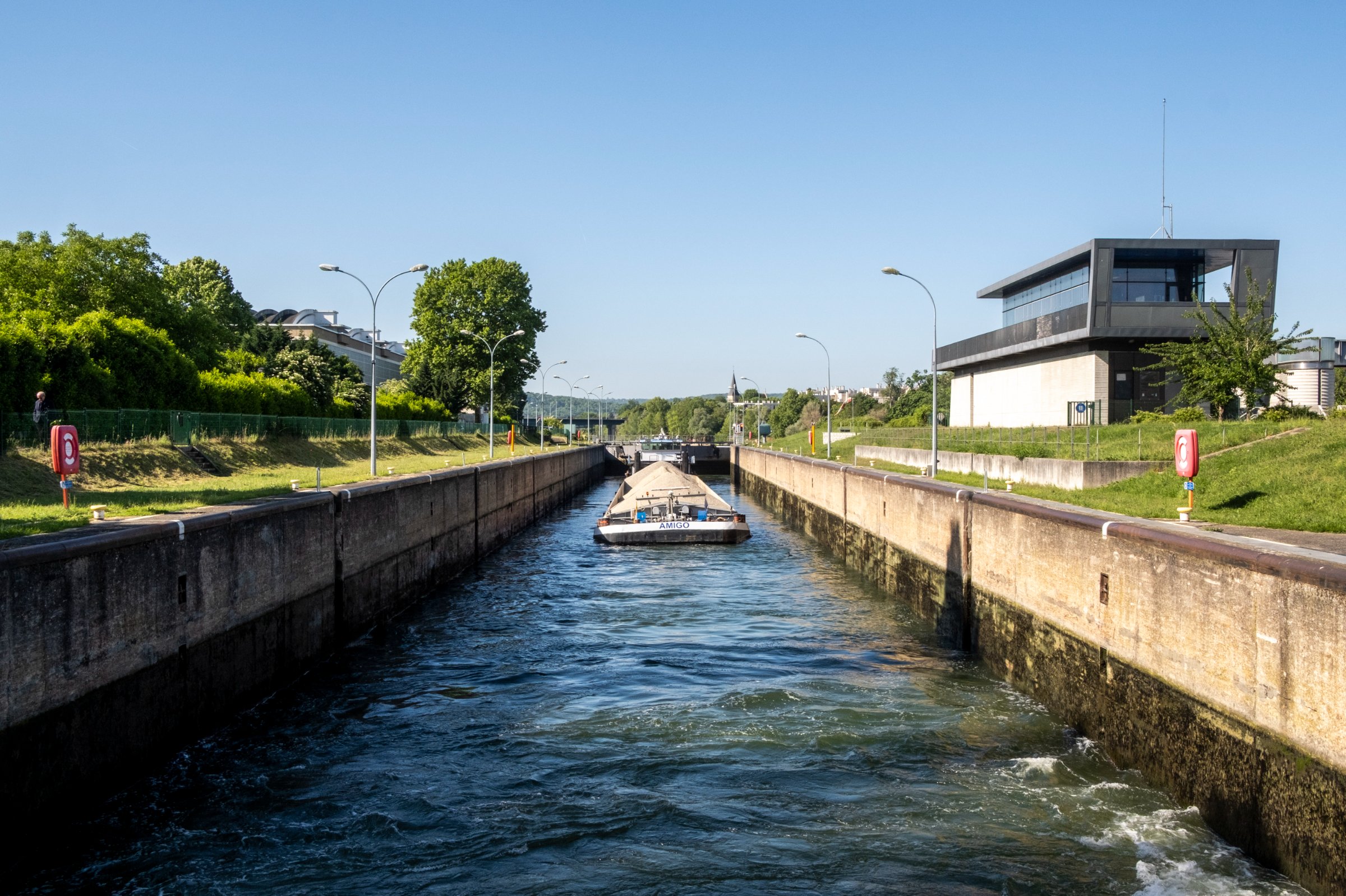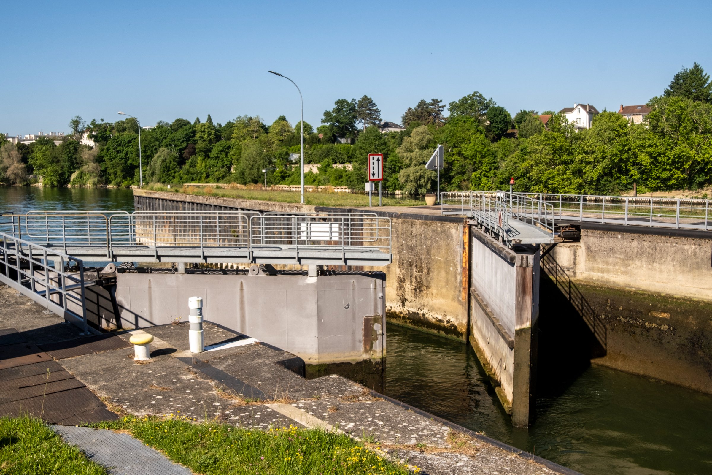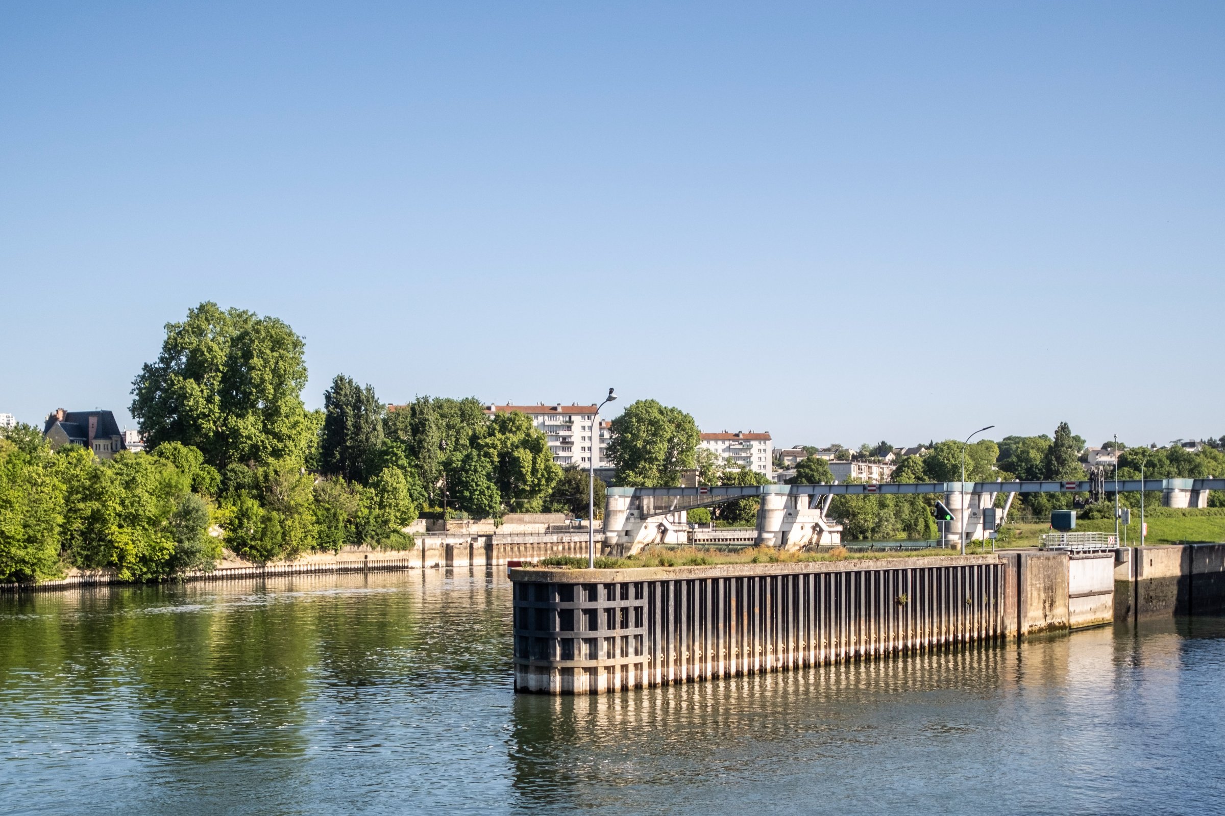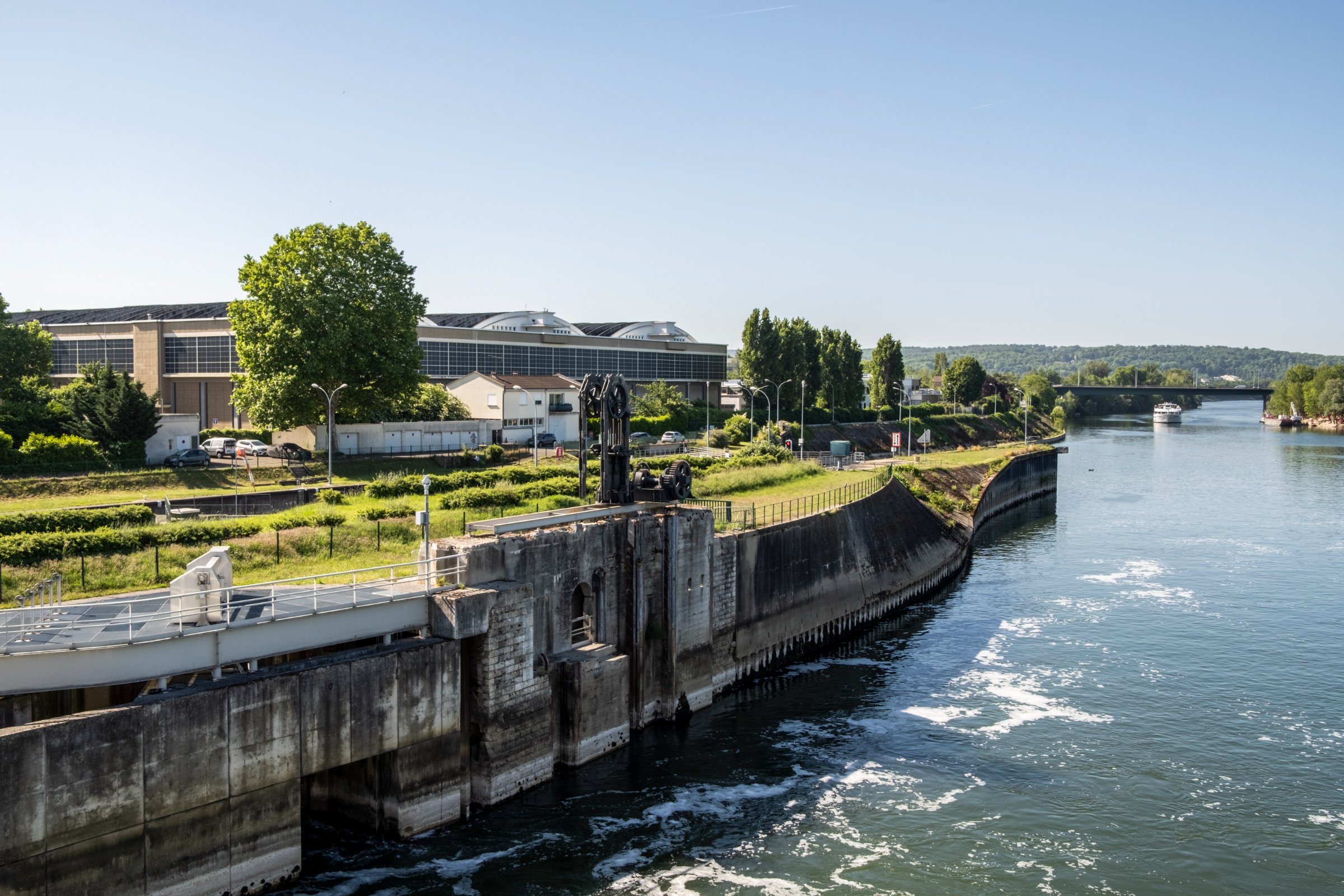 « Il s’agit d’un barrage de navigation, explique Jérome Temperault, responsable du secteur Île-de-France à la subdivision exploitation de VNF. Son rôle est de réguler le niveau d’eau de tout le bief amont jusqu’à Suresnes, afin de maintenir un mouillage de 4m nécessaire à la circulation sur les 28 km du bief. »